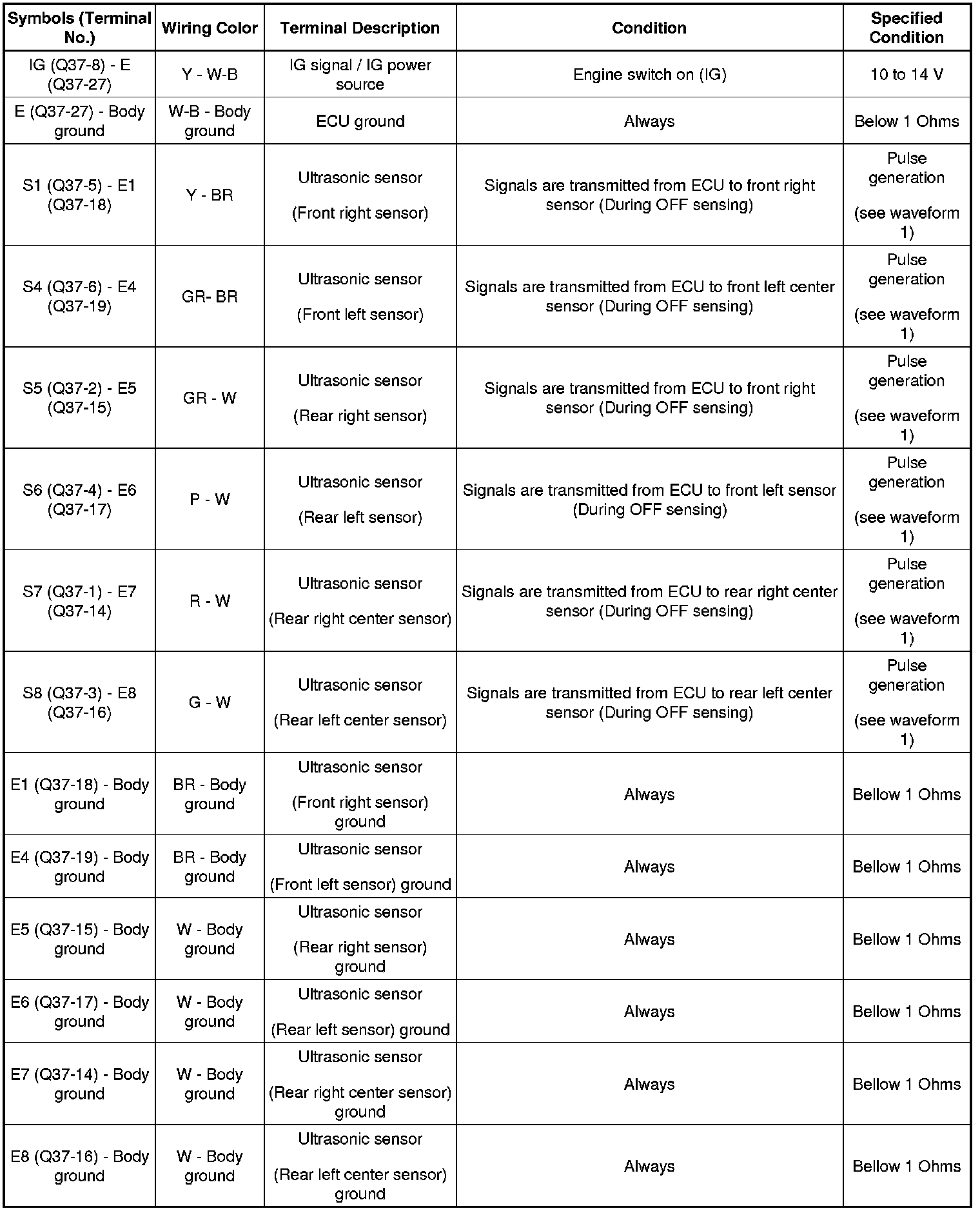 PARK ASSIST / MONITORING: INTUITIVE PARKING ASSIST SYSTEM: TERMINALS OF ECU