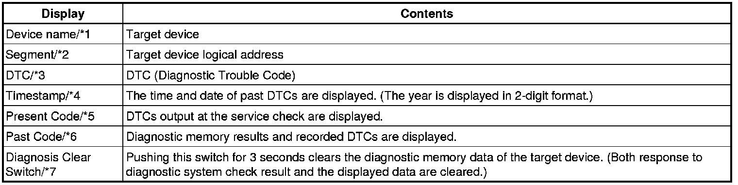 NAVIGATION: NAVIGATION SYSTEM: DIAGNOSIS DISPLAY DETAILED DESCRIPTION