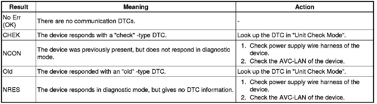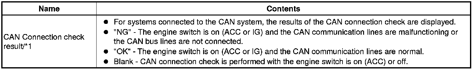 - When the engine switch is turned off, the bus lines are disconnected, or a malfunction occurs in the bus lines while the CAN connection check result is being displayed, the problem will be reflected on the screen in real time.