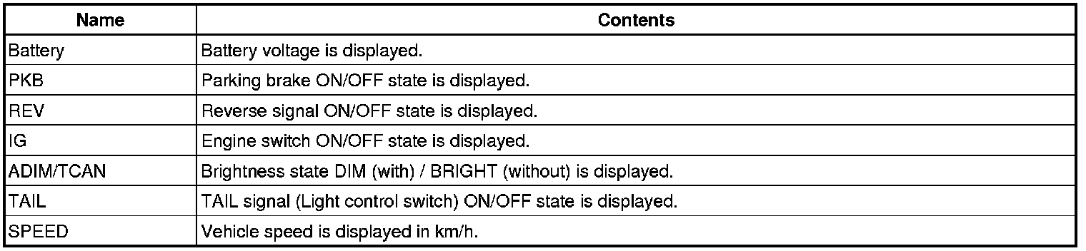 - This screen is updated once per second when input signals to the vehicle are changed.