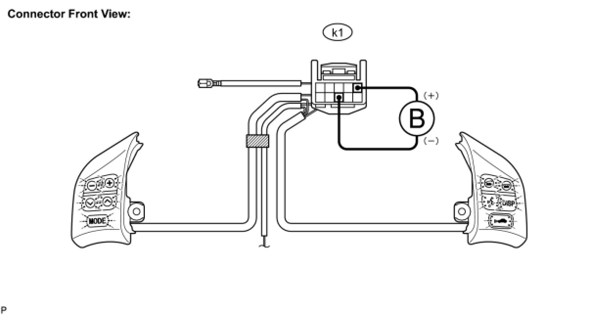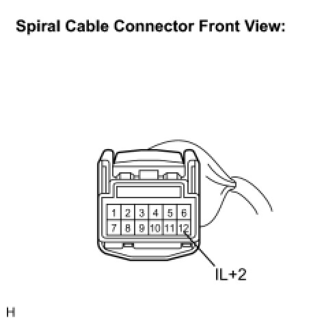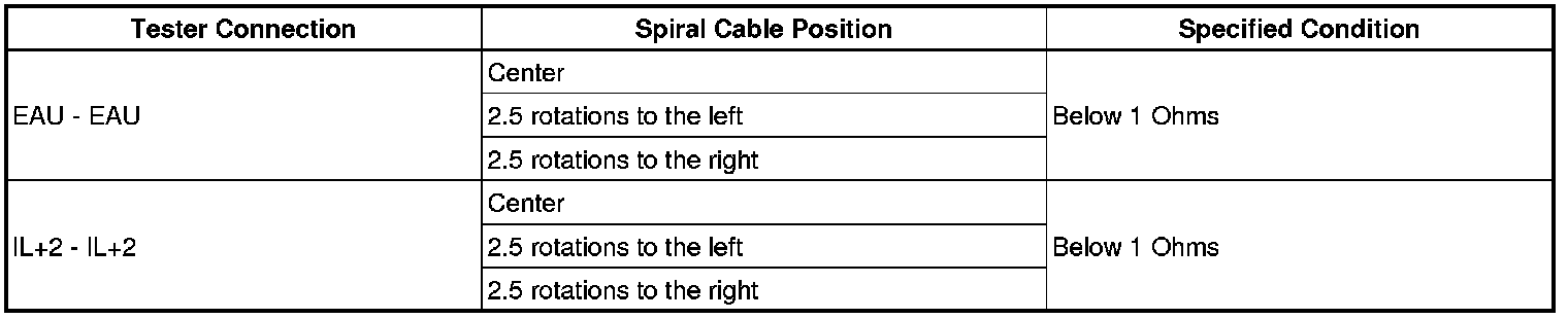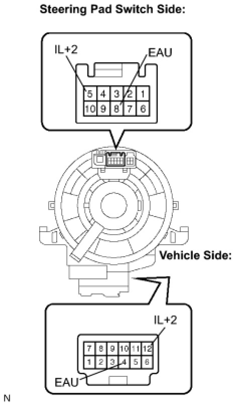 (b) Connect the positive (+) lead to terminal IL+2 and the negative (-) lead to terminal EAU of the steering pad switch assembly connector.