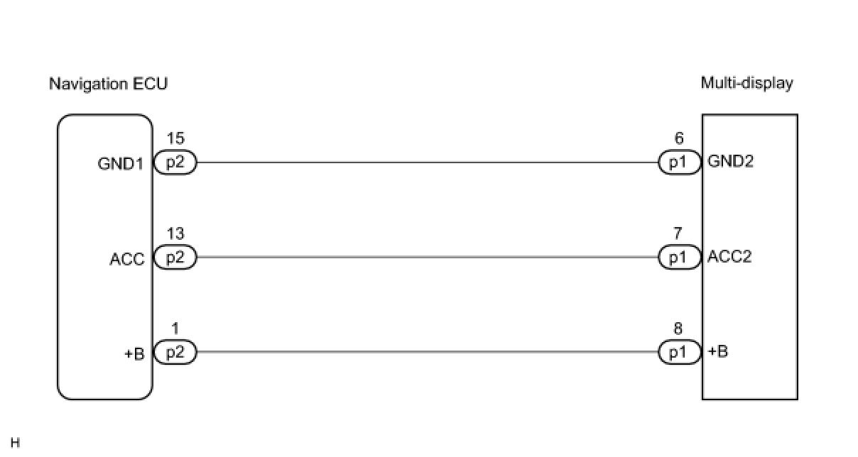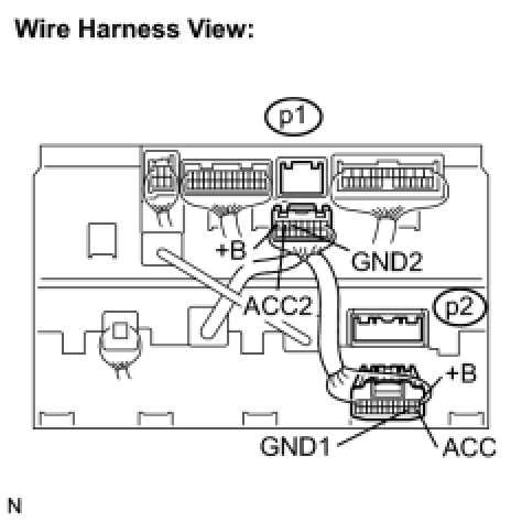 (a) Disconnect the navigation ECU connector p2 and multi-display connector p1.