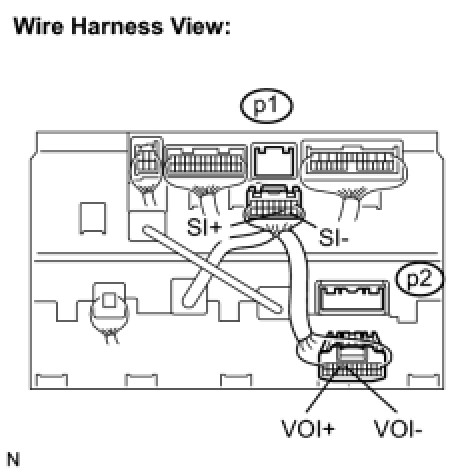 (a) Disconnect the multi-display connector p1 and the navigation ECU connector p2.