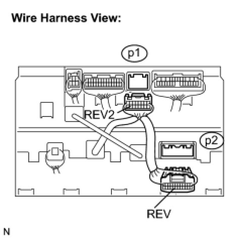 (a) Disconnect multi-display connector p1 and navigation ECU connector p2.