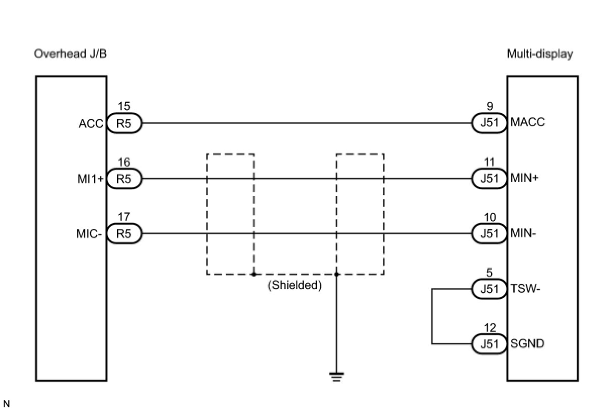 This circuit sends a microphone signal from the overhead J/B to the multi-display. It also supplies power from the multi-display to the overhead J/B.