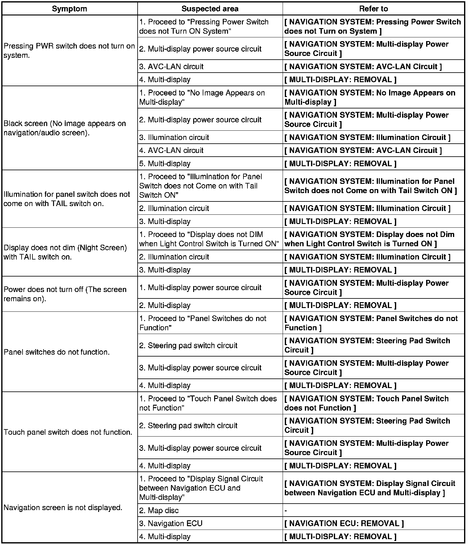 NAVIGATION: NAVIGATION SYSTEM: PROBLEM SYMPTOMS TABLE
