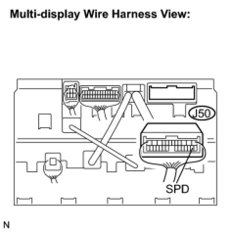 (4) Measure the voltage between terminal SPD of the multi-display and body ground when the drive wheels are turned slowly.