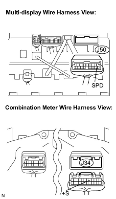 (a) Disconnect the multi-display connector J50 and combination meter connector J34.
