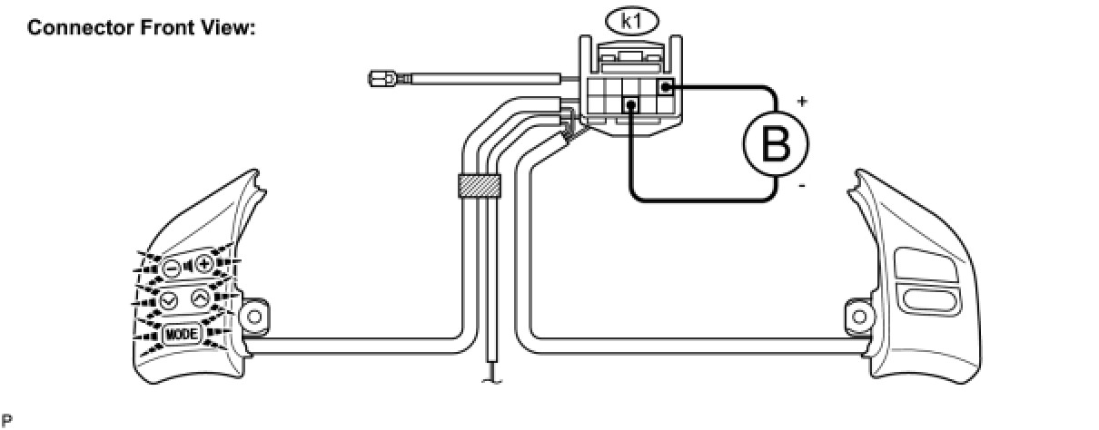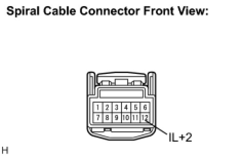 (b) Connect the positive (+) lead to terminal IL+2 and the negative (-) lead to terminal EAU of the steering pad switch assembly connector.
