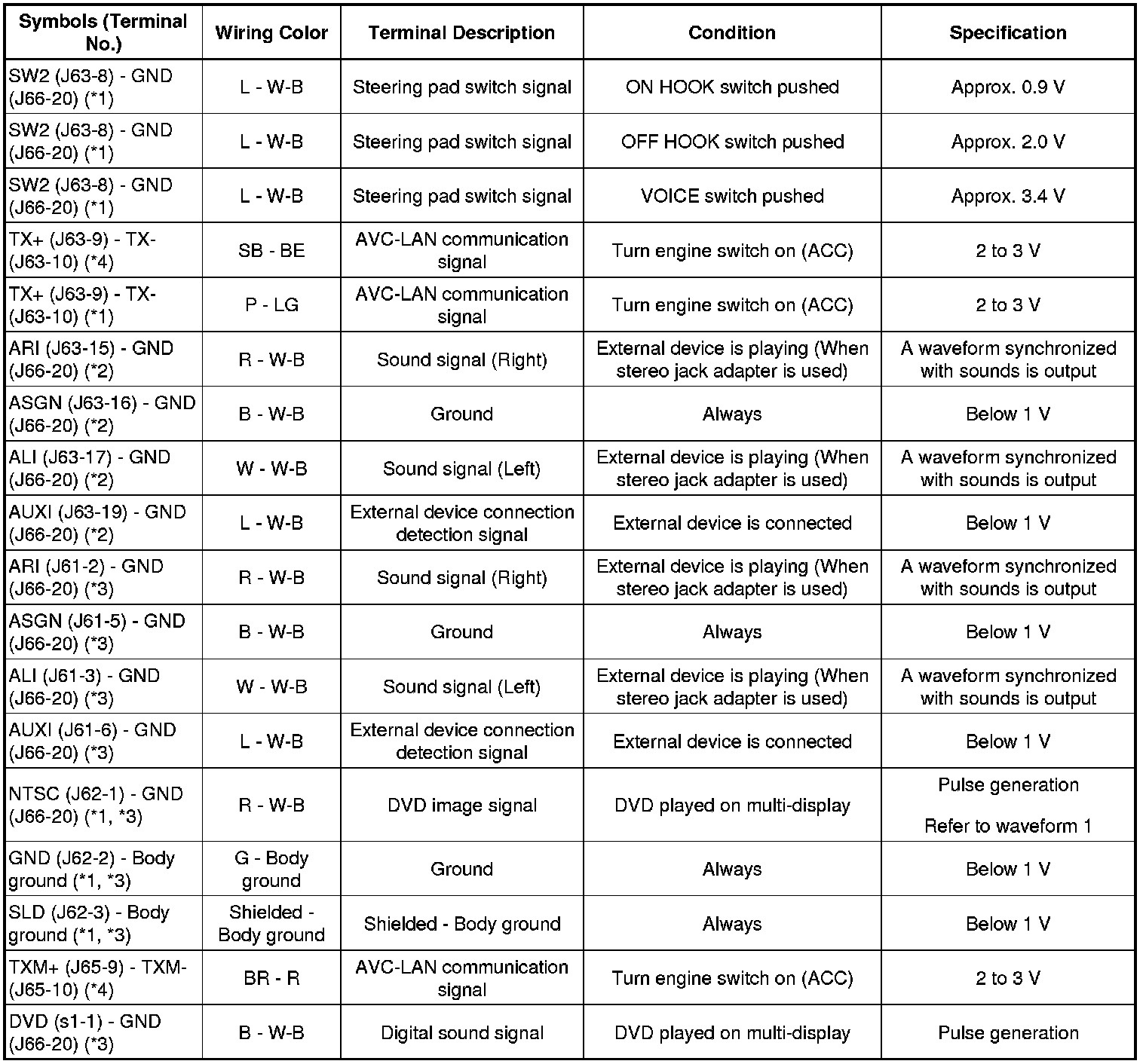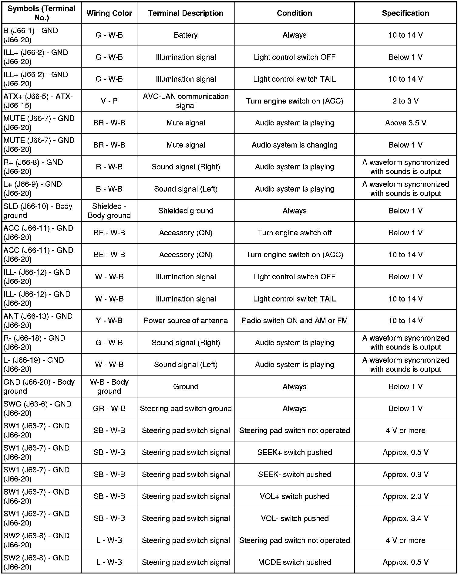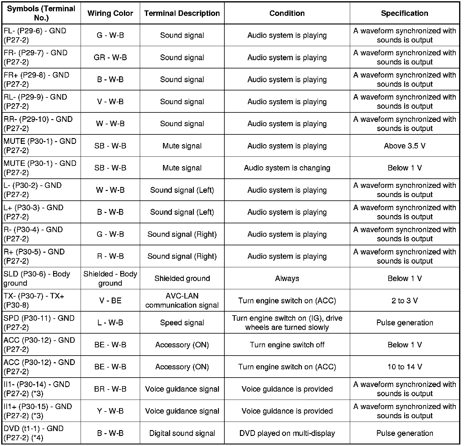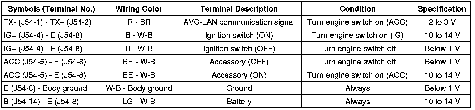 AUDIO / VISUAL: AUDIO AND VISUAL SYSTEM: TERMINALS OF ECU