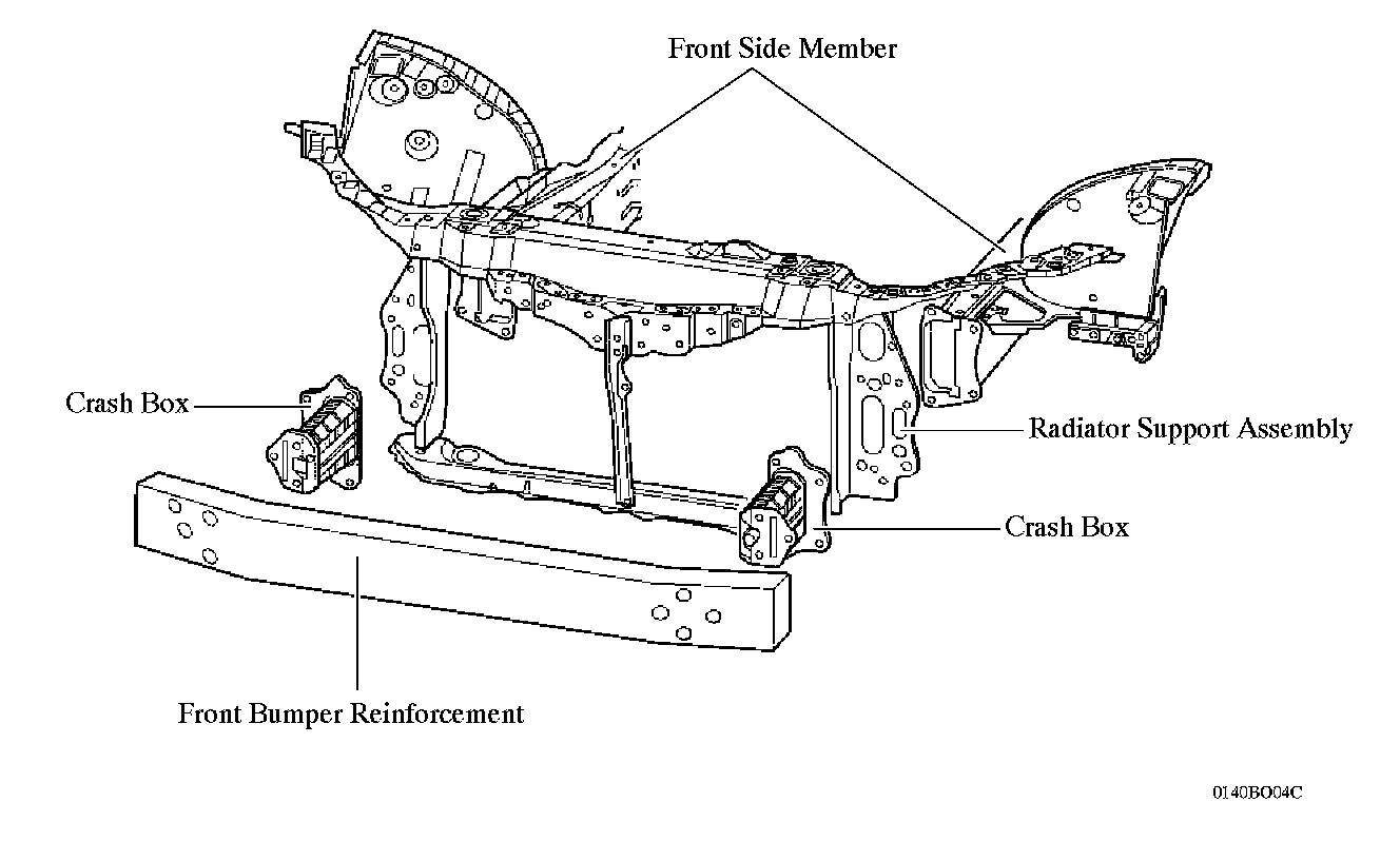 ^ By adopting a front crash box construction, impact can be absorbed in the event of a minor collision, reducing the need for front side member repairs.