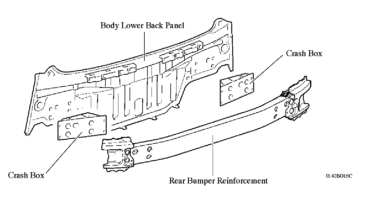 ^ By adopting a rear crash box construction, impact can be absorbed in the event of a minor collision, reducing the need for rear floor side-member repairs.