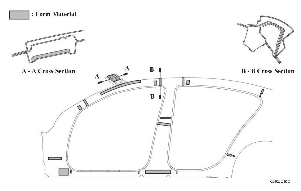 ^ Foam materials have been optimally placed on or in the side members and pillars.