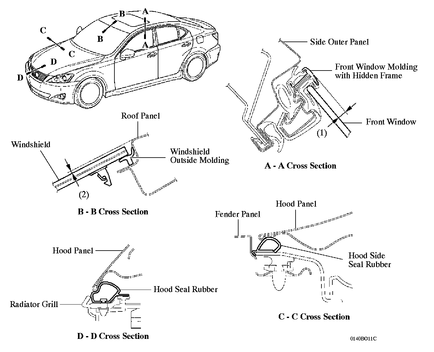 ^ The windshield outside molding is used to minimize the step between the windshield and roof panel. (2)