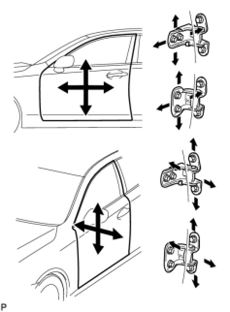 - Before adjusting the door position for vehicles equipped with side airbags and curtain shield airbags, be sure to disconnect the battery. After adjustment, inspect the SRS warning light, the side airbag system, and the curtain shield airbag system for normal operation. Then initialize both airbag systems.