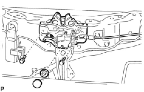 (c) Install the hood lock assembly with the 2 bolts and nut.