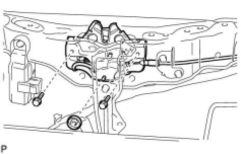 (b) Disconnect the hood lock control cable and remove the hood lock control lever.