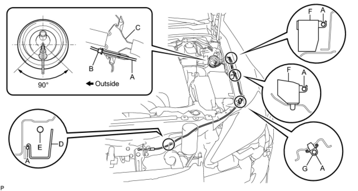 11. REMOVE HOOD LOCK CONTROL CABLE ASSEMBLY