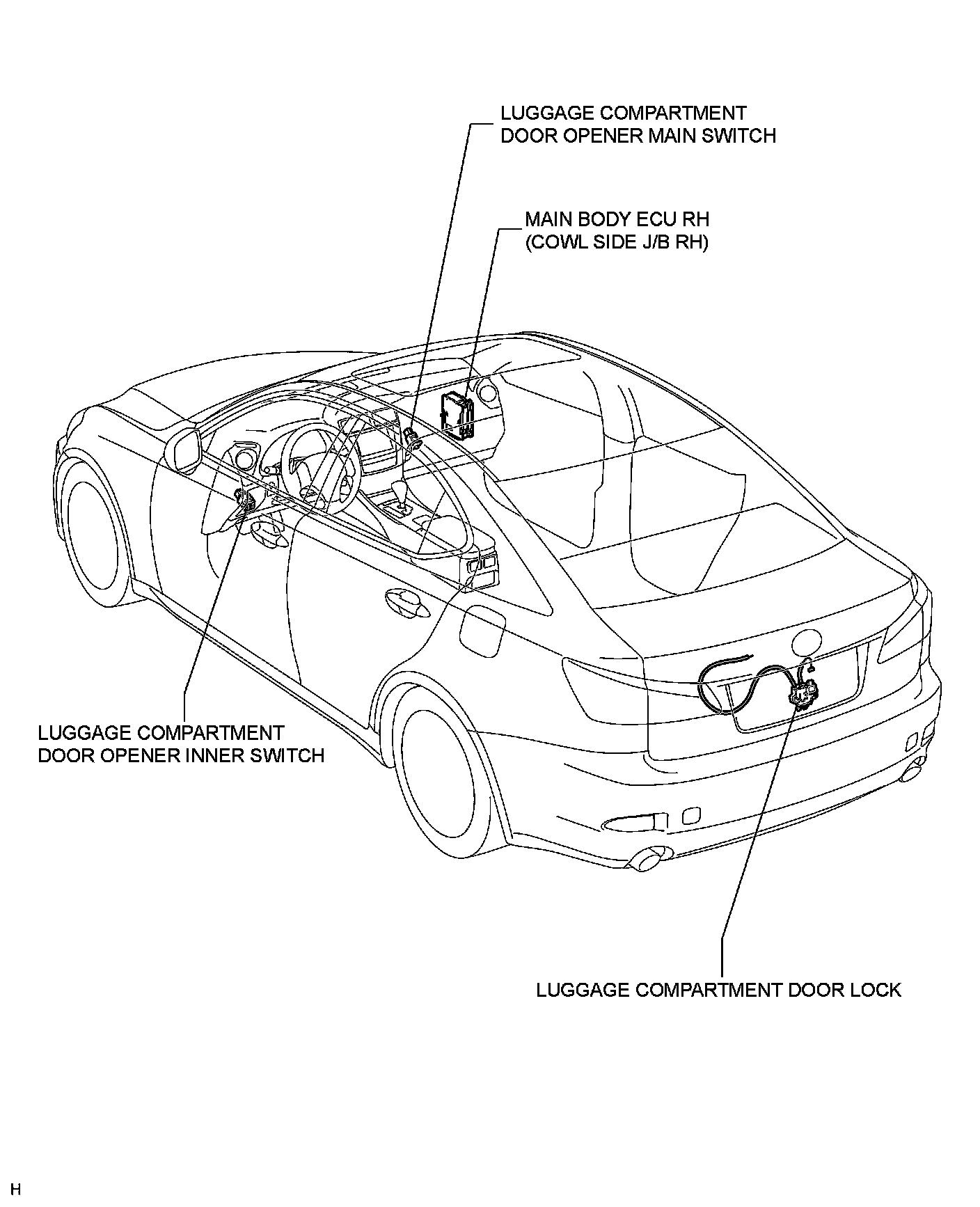 ENGINE HOOD / DOOR: LUGGAGE COMPARTMENT DOOR OPENER SYSTEM: PARTS LOCATION