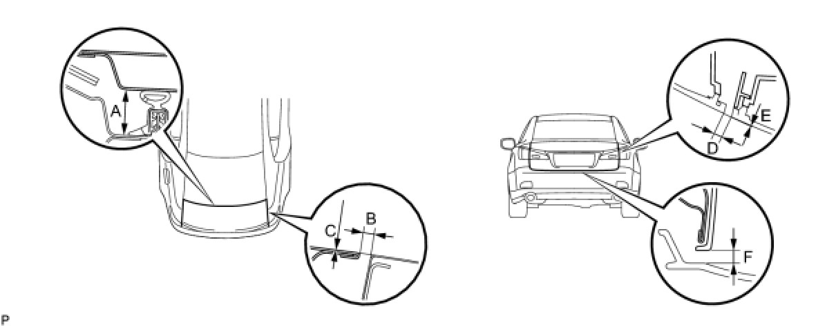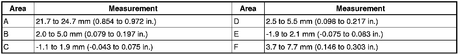 (a) Check that the clearance measurements of areas A to F are within each standard range.