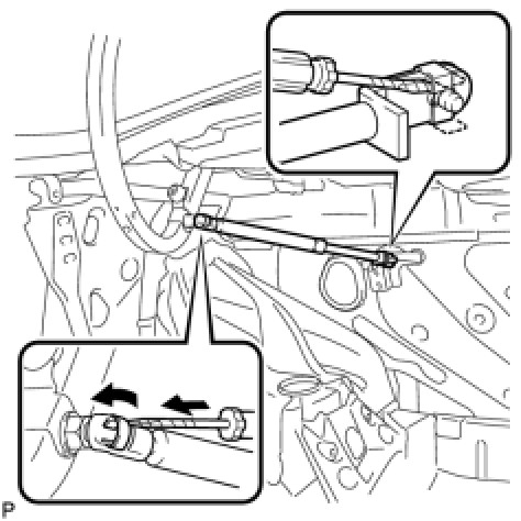 (b) Using a screwdriver, remove the stop ring on the ball joint along its groove.