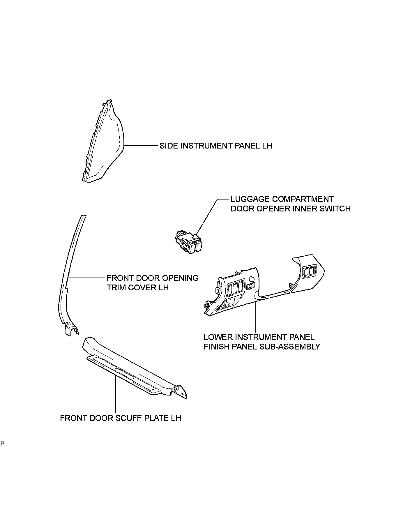 ENGINE HOOD / DOOR: LUGGAGE COMPARTMENT DOOR OPENER INNER SWITCH: COMPONENTS