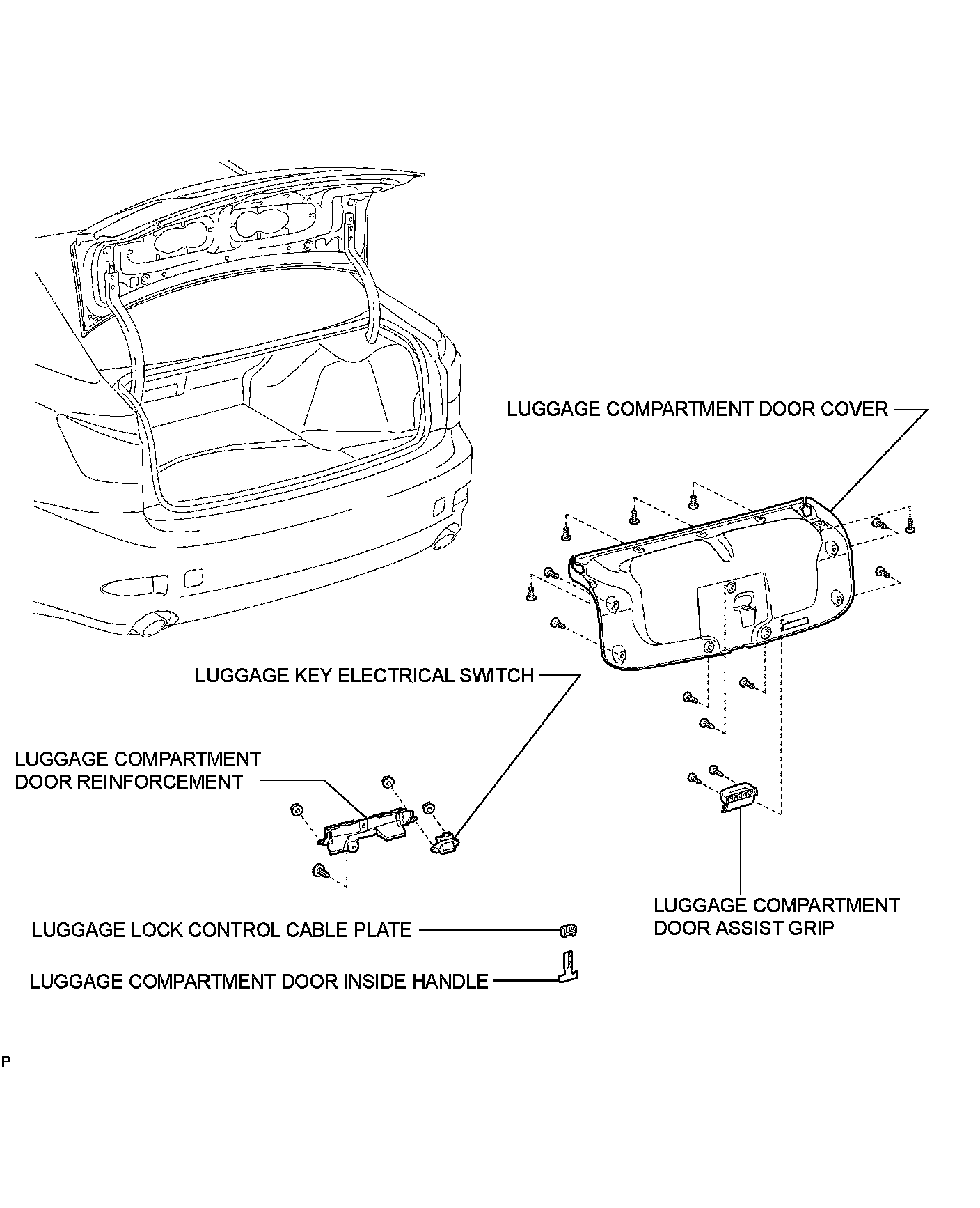 ENGINE HOOD / DOOR: LUGGAGE COMPARTMENT DOOR OPENER OUTER SWITCH: COMPONENTS