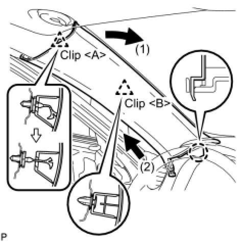 (a) Disengage the 4 clips and claw, and remove the roof side inner garnish LH.