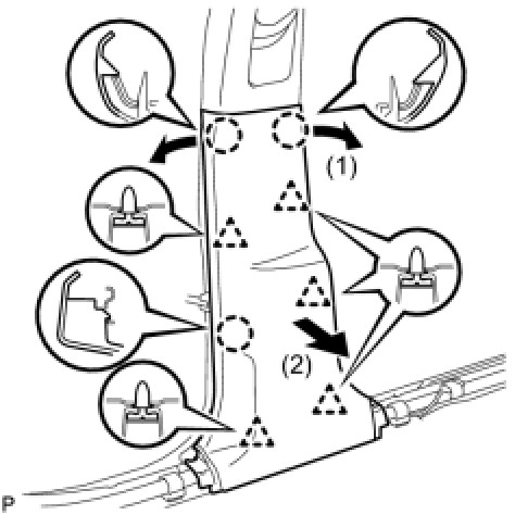 (a) Disengage the 3 claws and 5 clips, and remove the lower center pillar garnish LH.