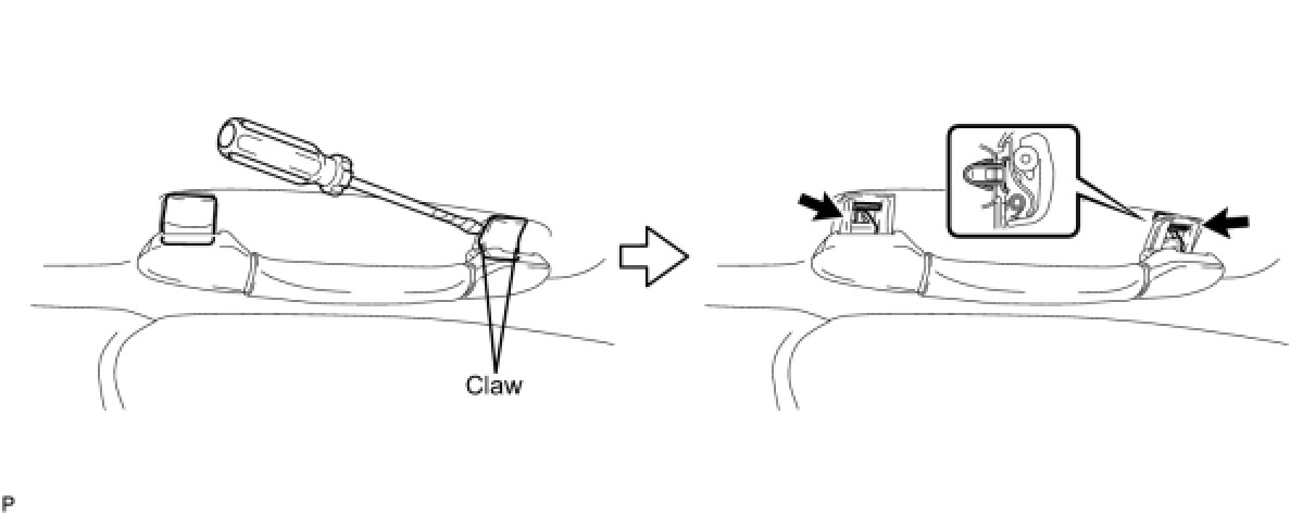 (a) Using a screwdriver, disengage the 4 claws and remove the 2 assist grip covers.