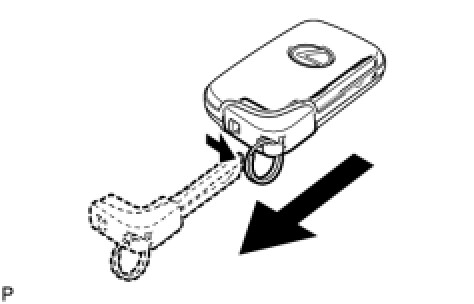 (a) Push and hold the release knob in the direction indicated by the arrow shown in the illustration. Then take the mechanical key out of the case.