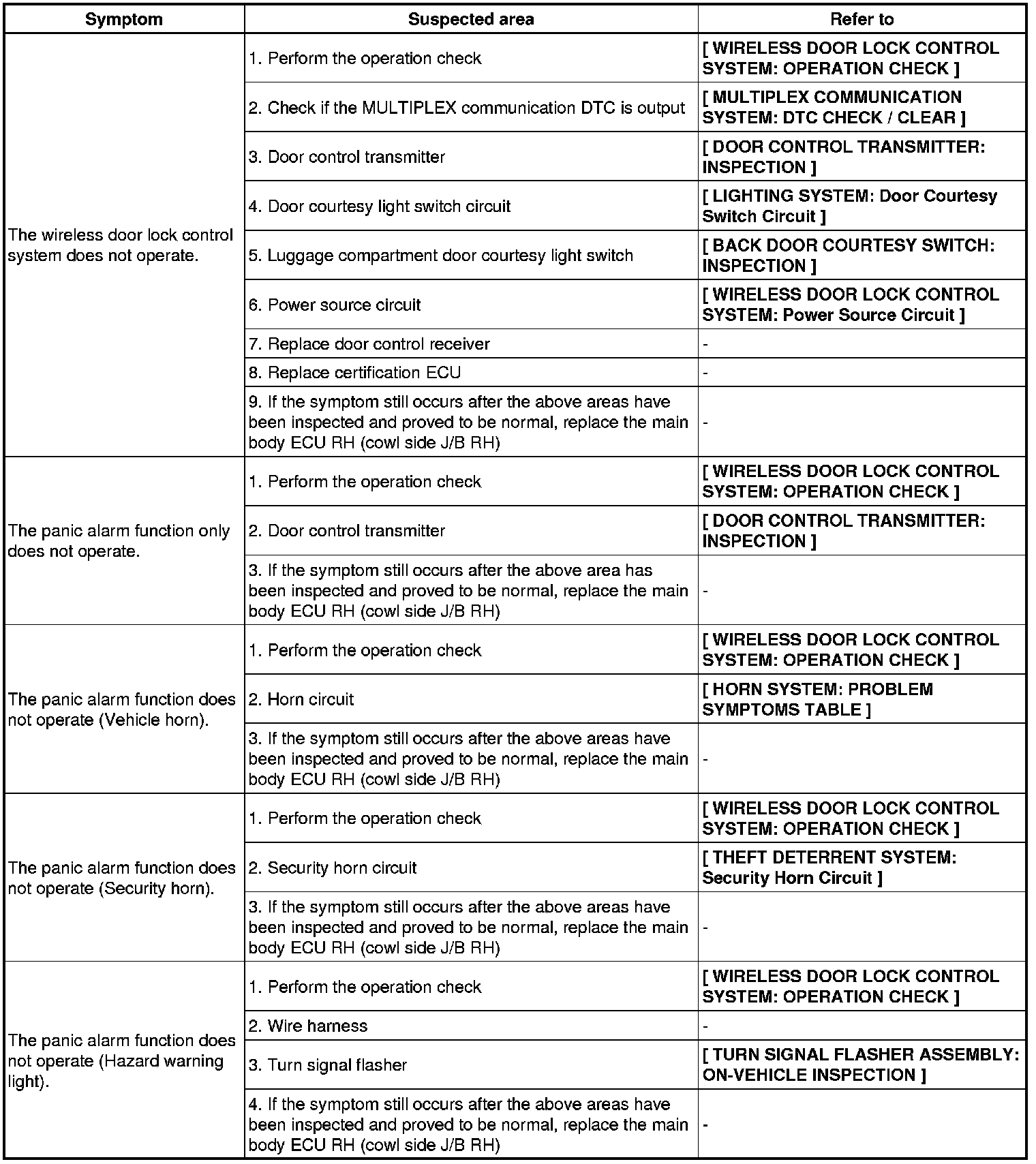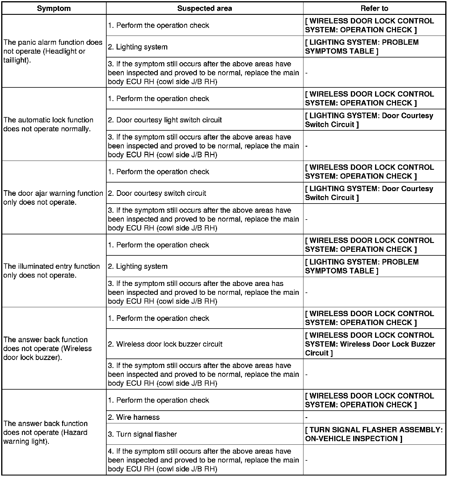DOOR LOCK: WIRELESS DOOR LOCK CONTROL SYSTEM: PROBLEM SYMPTOMS TABLE