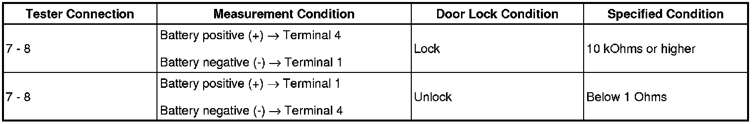 (1) Apply battery voltage and check operation of the door lock motor.