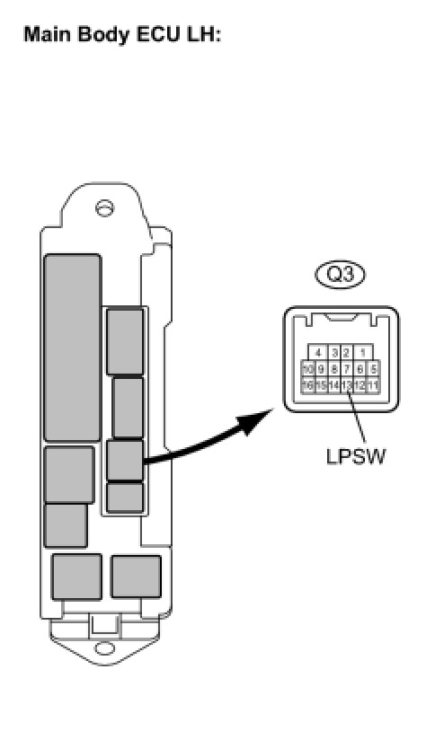 1. CHECK HARNESS AND CONNECTOR (MAIN BODY ECU LH - LUGGAGE COMPARTMENT OPENER SWITCH)