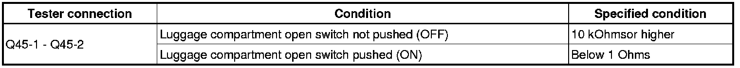 2. INSPECT LUGGAGE COMPARTMENT OPENER SWITCH
