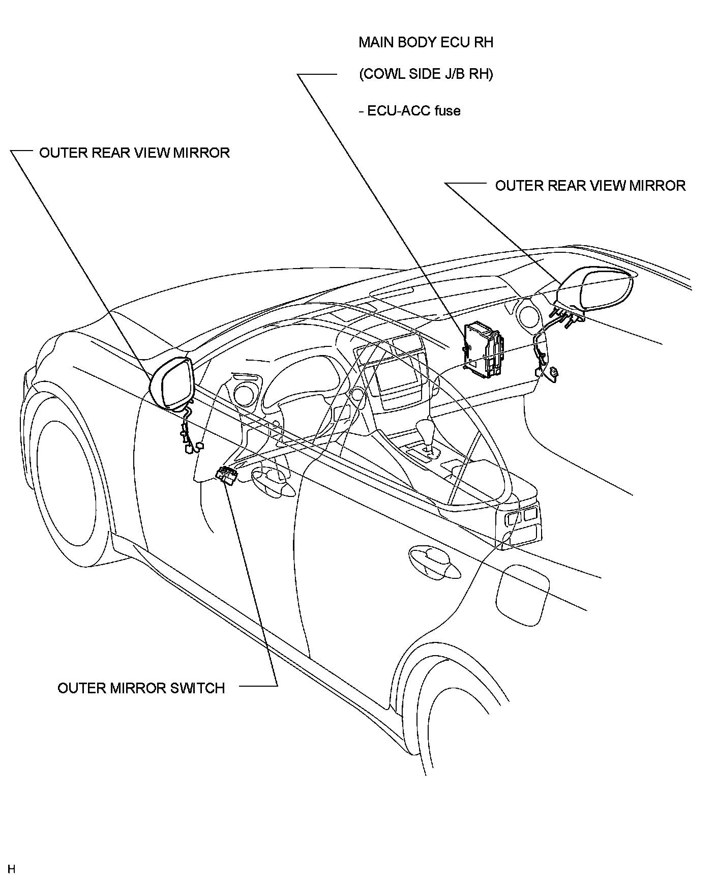 MIRROR: POWER MIRROR CONTROL SYSTEM (w/o Memory): PARTS LOCATION