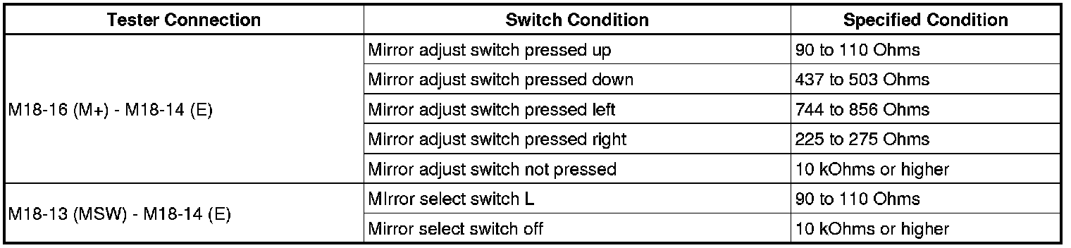 MIRROR: OUTER MIRROR SWITCH: INSPECTION