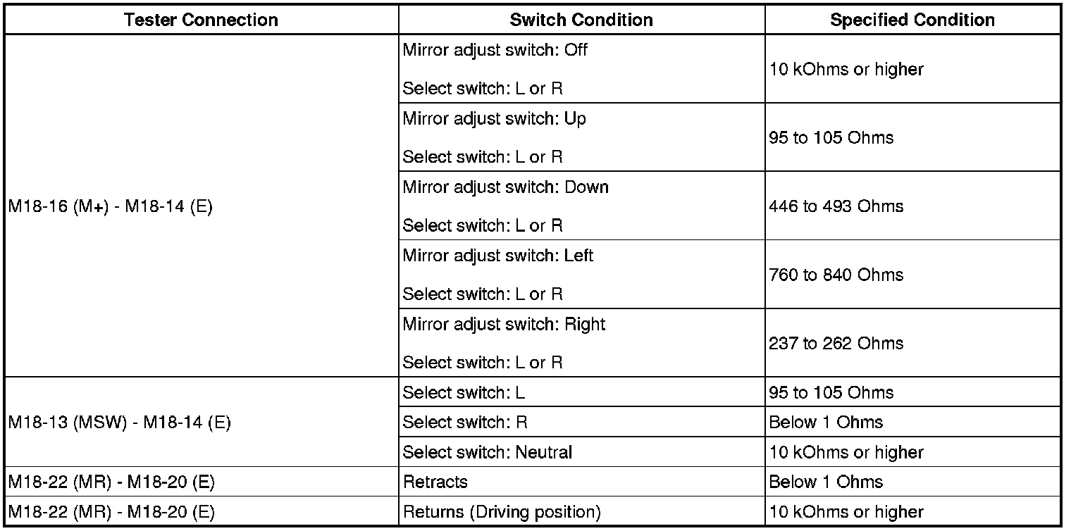 2. INSPECT OUTER MIRROR SWITCH (w/ Seat Position Memory System)