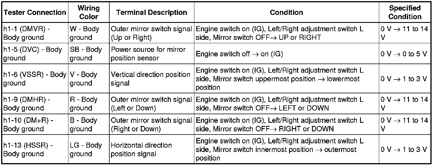 MIRROR: POWER MIRROR CONTROL SYSTEM (w/ Memory): TERMINALS OF ECU