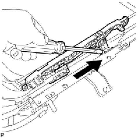 (d) Using a screwdriver, slide the sliding roof drive cable sub-assembly in the direction indicated by the arrow in the illustration to remove it.