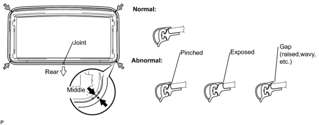 (1) Check the gap between the roof panel and roof glass.