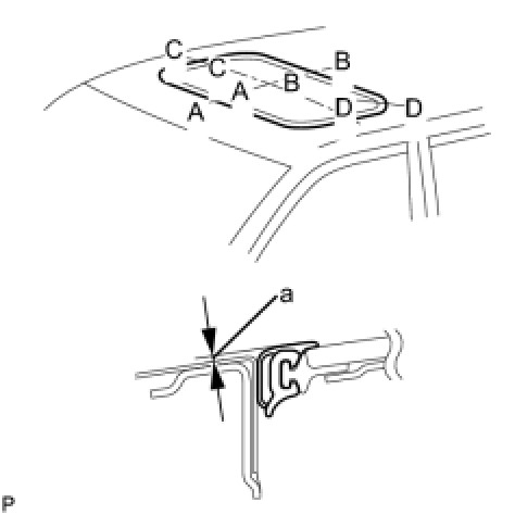 (1) Check the difference in level for "a" between the roof panel and the upper surface of the weather strip when the sliding roof glass is fully closed.