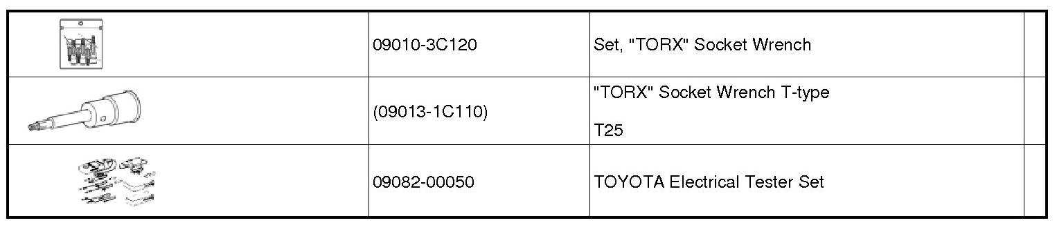 PREPARATION: SLIDING ROOF: RECOMMENDED TOOLS