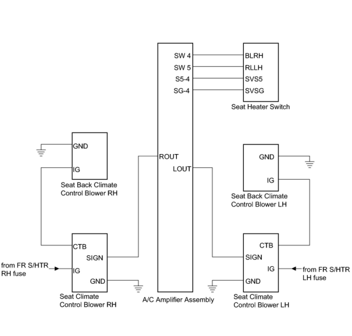 (c) The blowers of both seats are controlled by the air conditioning amplifier assembly (A/C ECU).