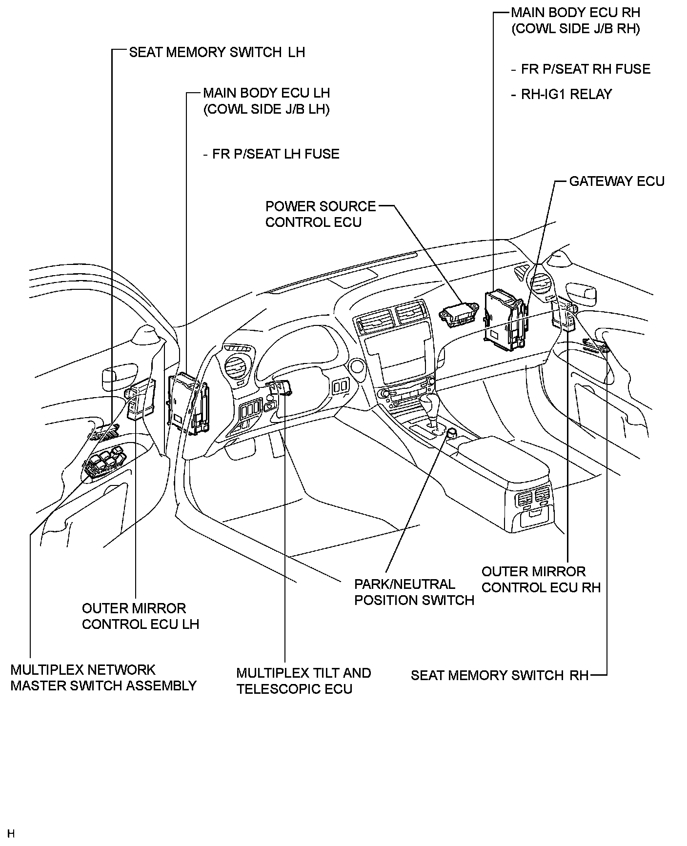 SEAT: FRONT POWER SEAT CONTROL SYSTEM (w/ Seat Position Memory System): PARTS LOCATION