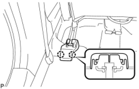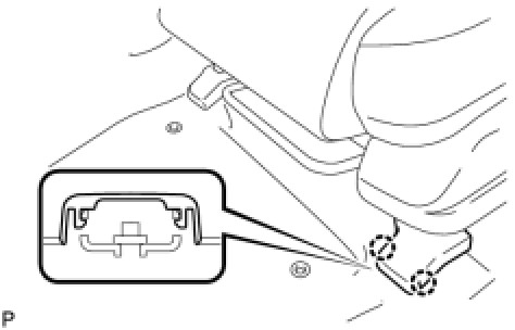 (a) Using a screwdriver, disengage the 2 claws and remove the rear inner seat track bracket cover.