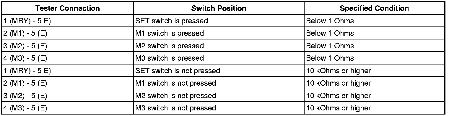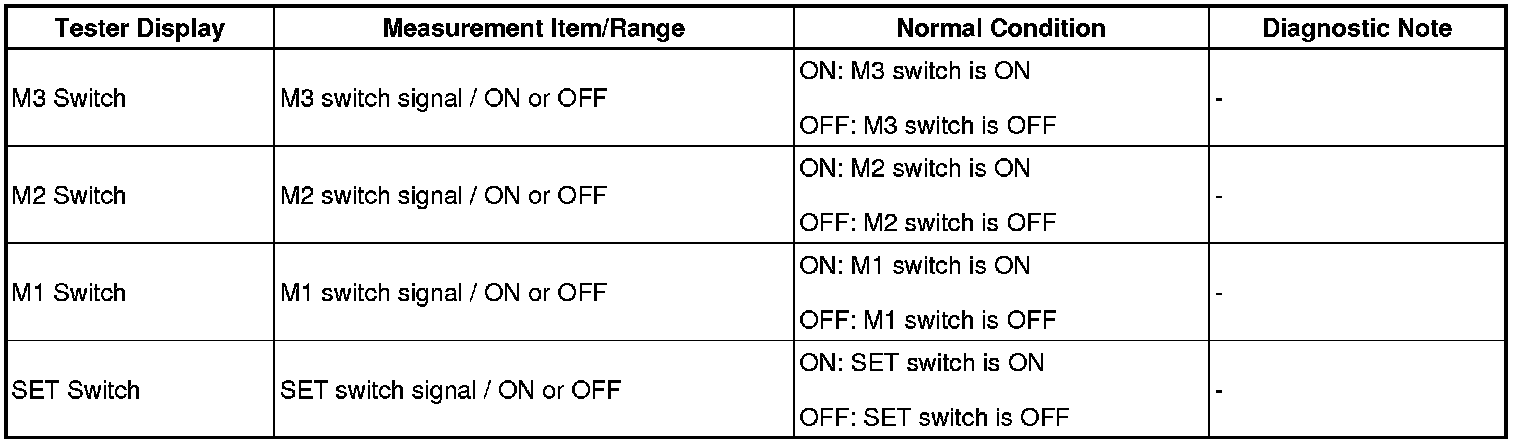 On the tester screen, each item changes between ON and OFF according to the above chart.