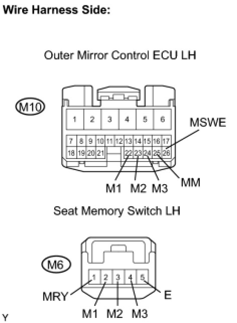 4. CHECK HARNESS AND CONNECTOR (OUTER MIRROR CONTROL ECU - SEAT MEMORY SWITCH, BODY GROUND)