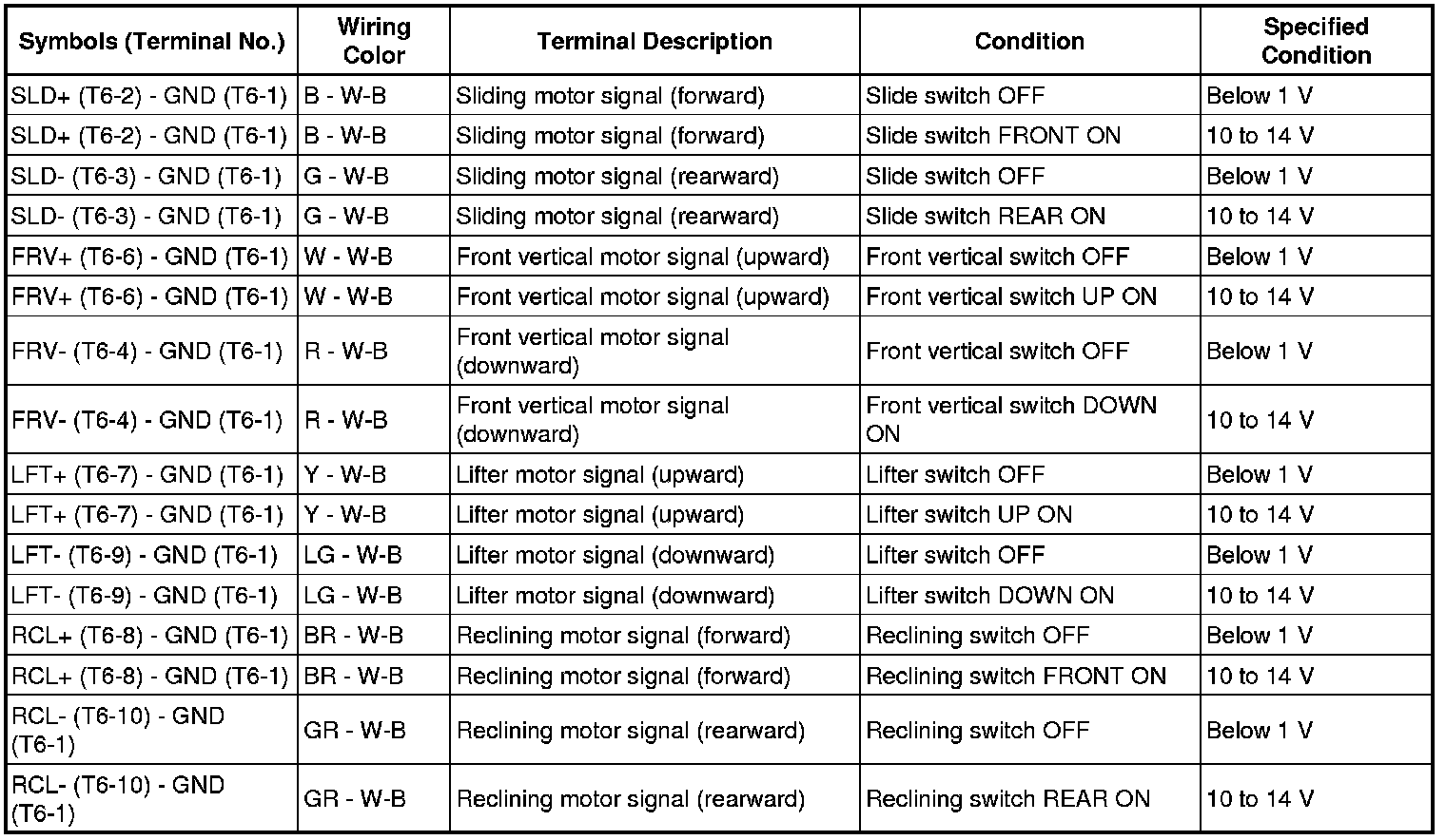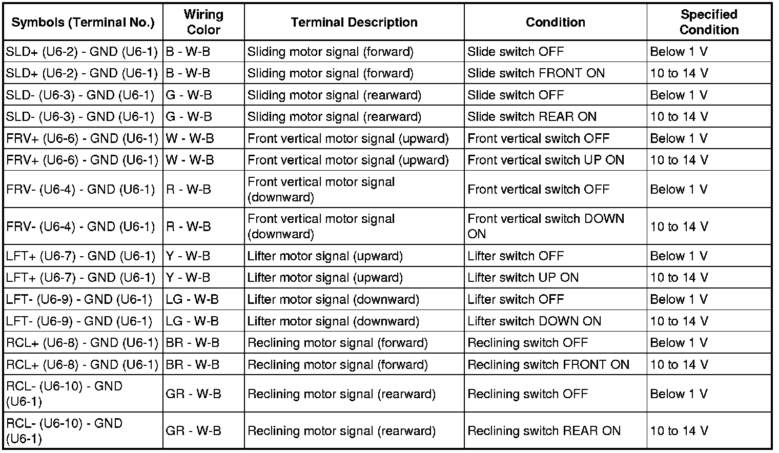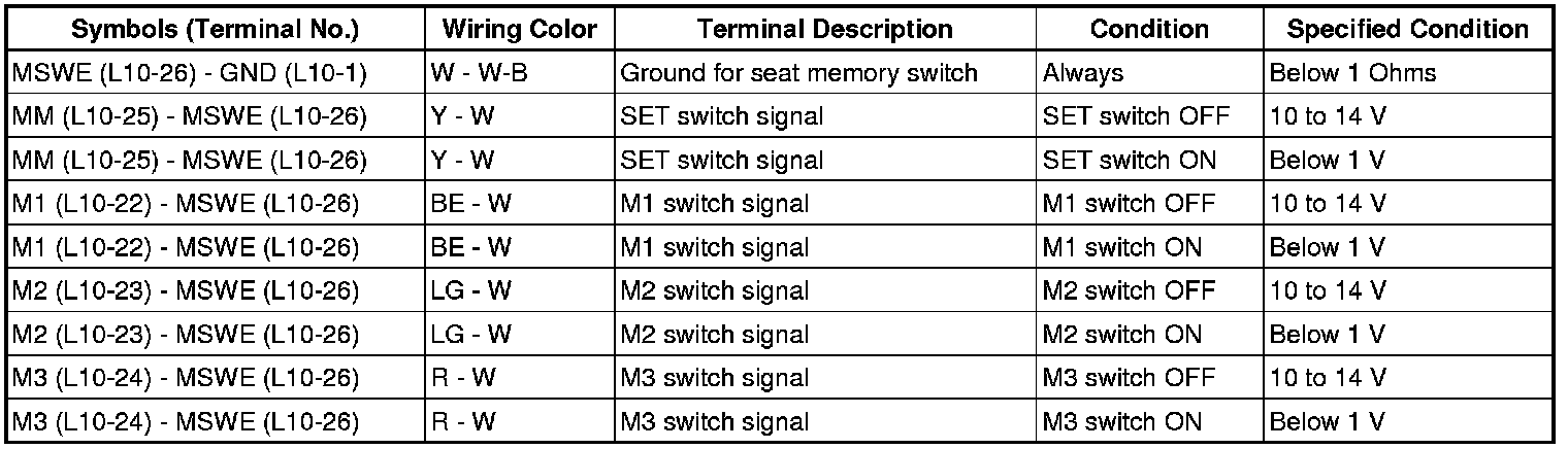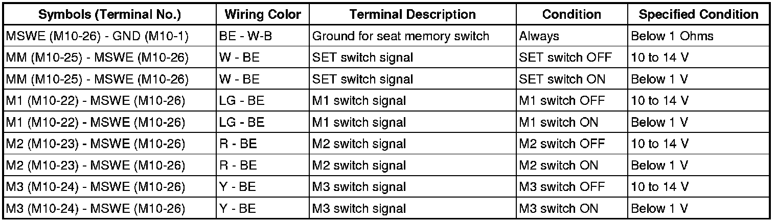 If the result is not as specified, the front power seat switch LH (position control ECU) may have a malfunction.