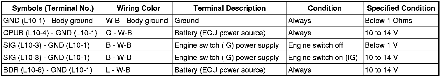 (c) Reconnect the L10 ECU connector.